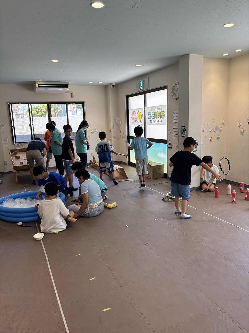 真夏の暑さが厳しい8月、あすにこでは毎年恒例の夏祭りを開催しました。子どもたちは、ゲームの製作や飾りつけを行い、完成後は祭り当日にお店側、お客さんと役割も行い、たくさんゲームを行いました。