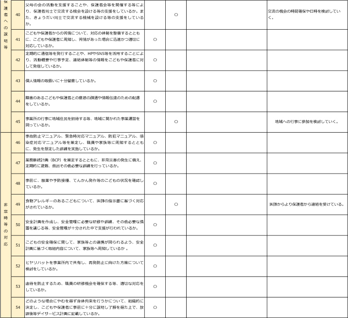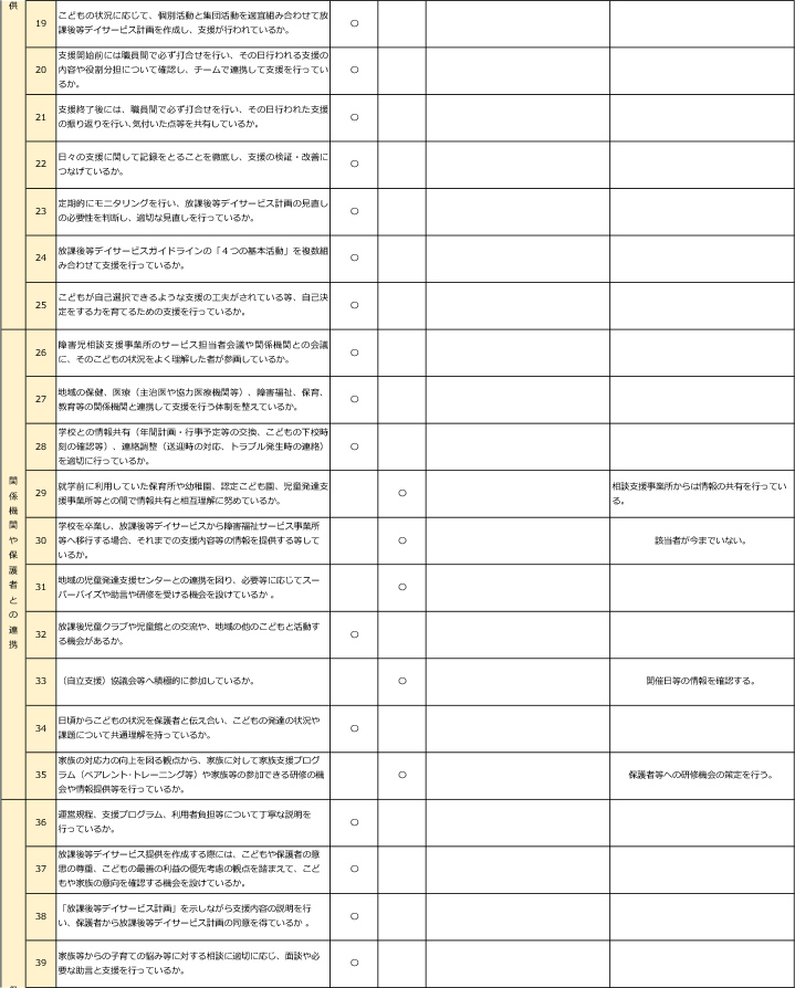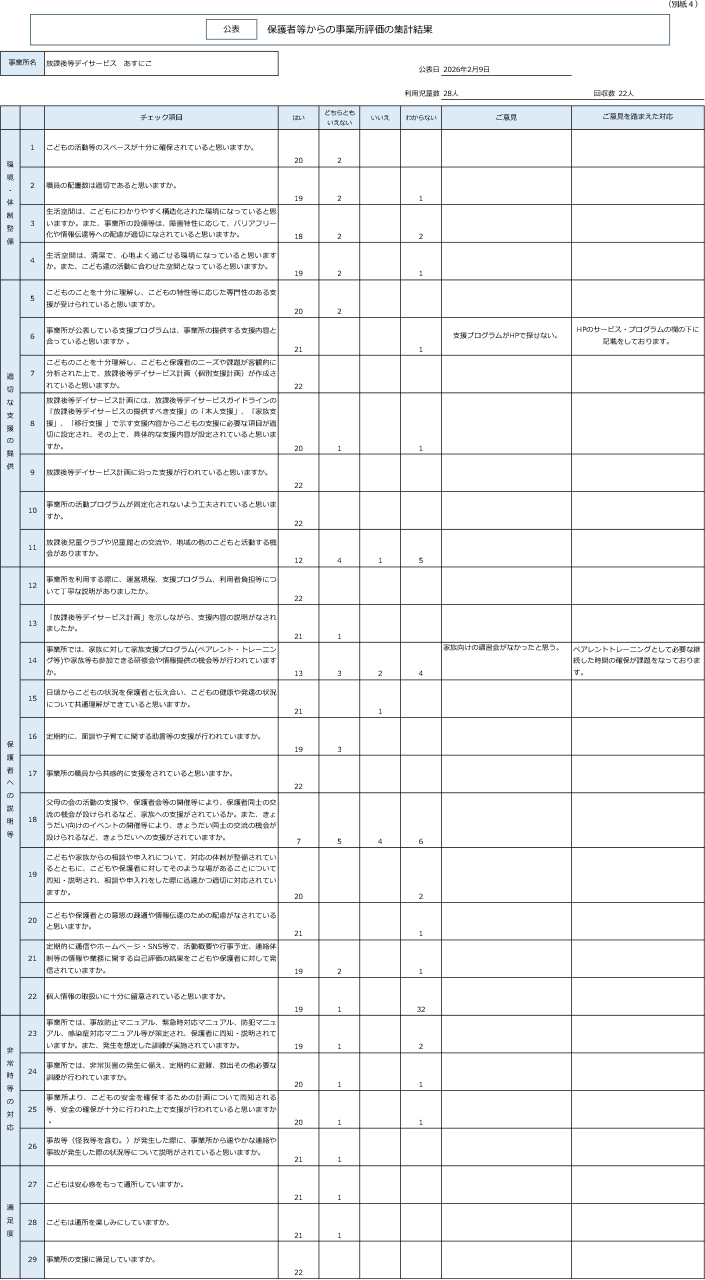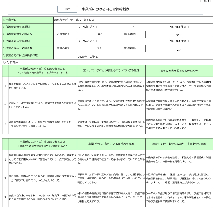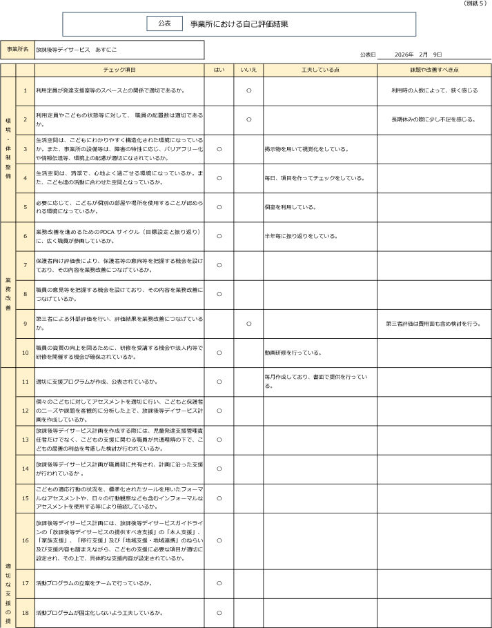 - 一日の流れ・自己評価結果